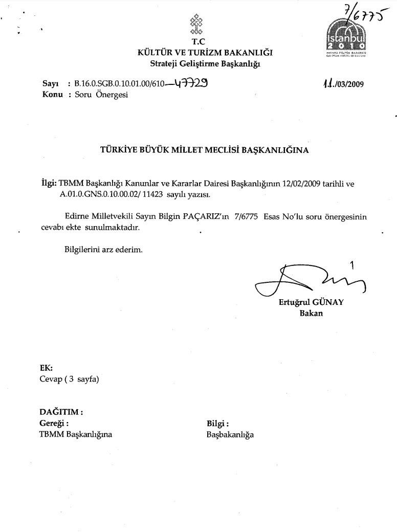 2009'DA MECLİS'TE SORU ÖNERGESİ VERİLMİŞ