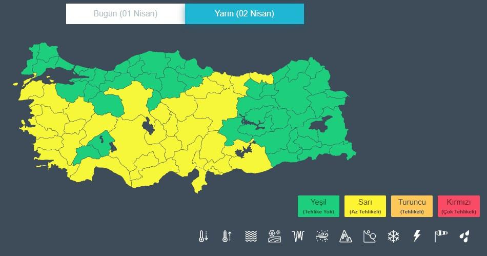 Meteoroloji Genel Müdürlüğü; Adana, Adıyaman, Afyonkarahisar, Ankara, Antalya, Aydın, Balıkesir, Çanakkale, Denizli, Gaziantep, Giresun, Hatay, Mersin, İzmir, Kayseri, Kırşehir, Konya, Kütahya, Manisa, K.Maraş, Muğla, Nevşehir, Niğde, Ordu, Sivas, Tokat, Trabzon, Şanlıurfa, Uşak, Yozgat, Aksaray, Karaman, Kilis ve Osmaniye dahil 34 kent için sarı kodlu uyarıda bulundu.