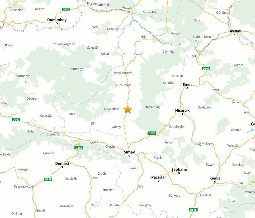 Kütahya'nın Simav ilçesinde saat 17.31'de 4,8 büyüklüğünde deprem meydana geldi. Deprem çevre illerden de hissedildi.