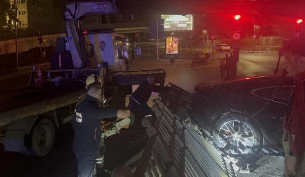 Şişli’de lüks otomobil, direksiyon hakimiyetini kaybederek bariyere çarptı. Çarpmanın etkisiyle savrulan otomobil, korkuluklara çıktı.