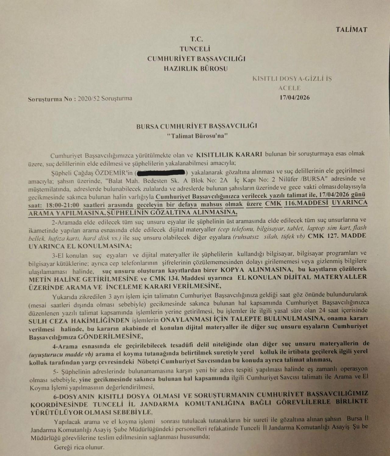 Tunceli Cumhuriyet Başsavcılığı’nın yürütmekte olduğu Gülistan Doku soruşturması kapsamında dönemin Tunceli Devlet Hastanesi Başhekimi Çağdaş Özdemir, Bursa’da gözaltına alındı.