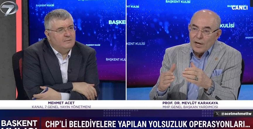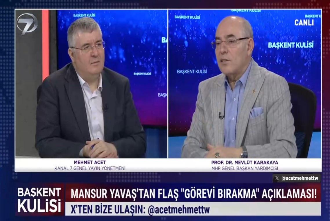 Kanal7 Genel Yayın Yönetmeni Mehmet Acet'in sunumuyla her hafta yayınlanan Başkent Kulisi programının bu haftaki konuğu, Milliyetçi Hareket Partisi (MHP) Genel Başkan Yardımcısı Prof. Dr. Mevlüt Karakaya oldu.