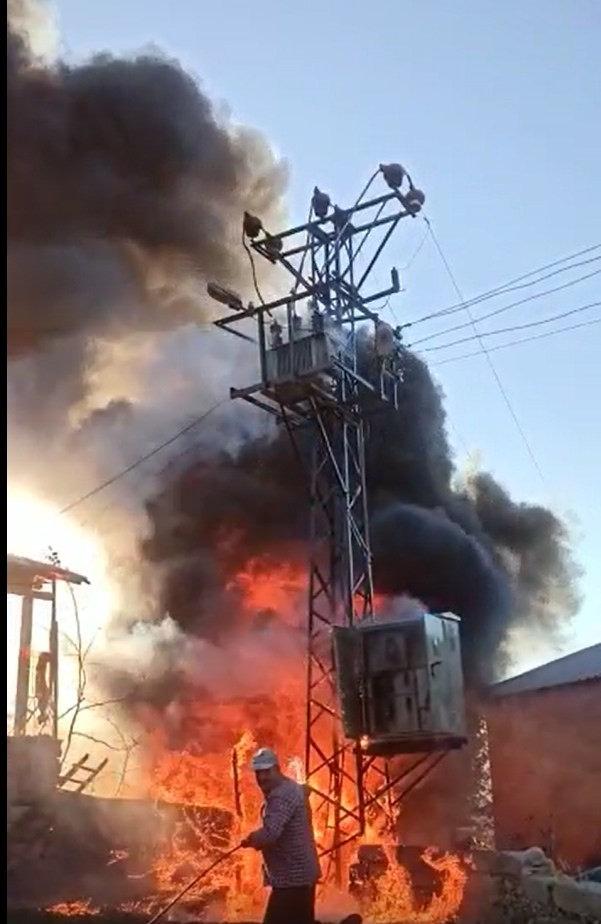 Trafonun yakınında bulunan Hidayet Yılmaz isimli vatandaşın evi kısmen hasar görürken, kış ayı için istiflenen tezeklerin tamamı ise yandı.