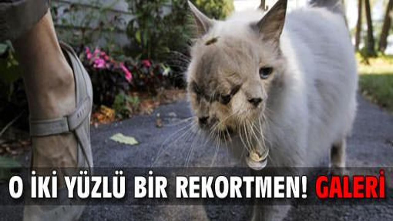 ABD'de iki yüzle dünyaya gelen kedi, 12 yıl hayatta kalmayı başararak bu alanda bir rekor kırdı ve Guinness Rekorlar Kitabı'nın 2012 sayısına girmeyi başardı.