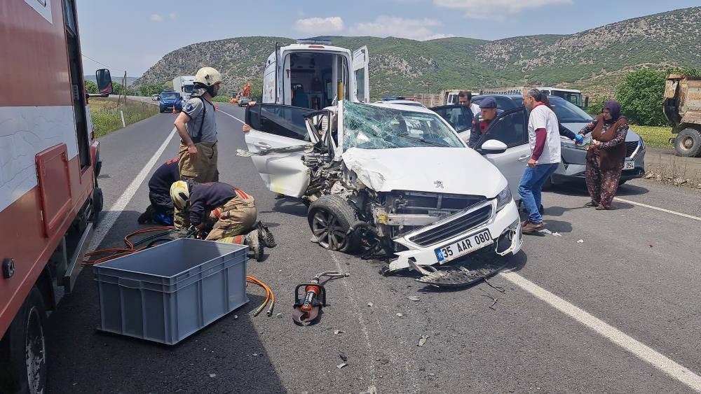 İzmir'de feci kaza! İki araç kafa kafaya çarpıştı