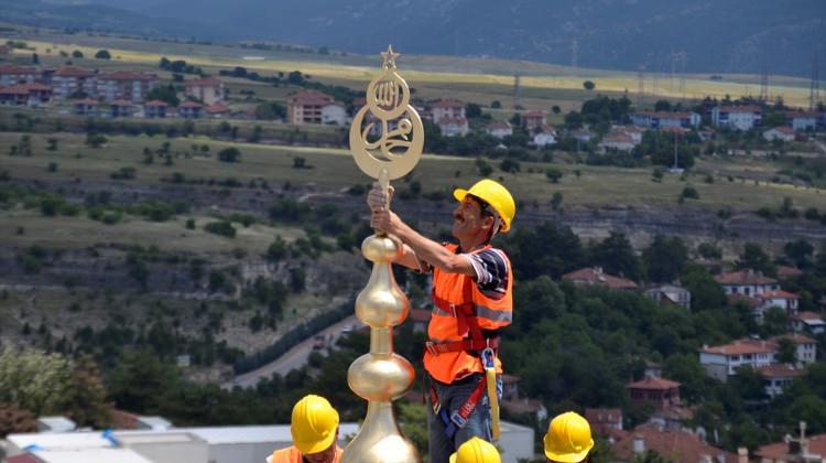Safranbolu ilçesinde hayırseverlerin yardımlarıyla yapılan Merkez Camisi'nin alemi törenle takıldı.