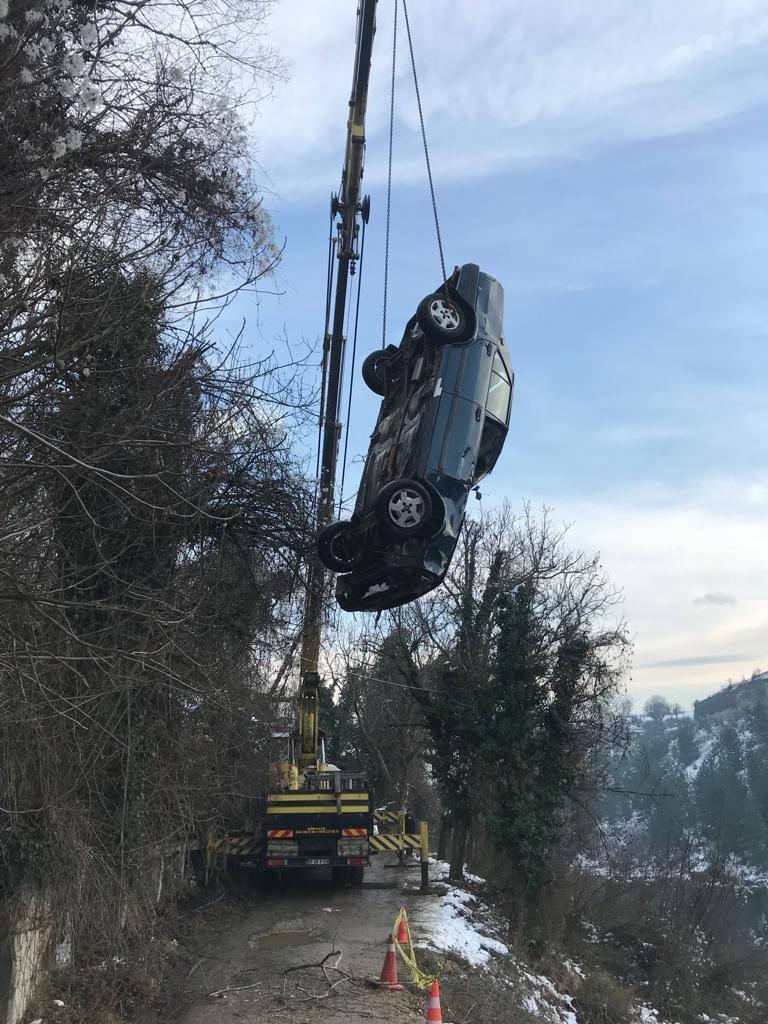 Safranbolu’da iki kişiye mezar olan otomobil uçurumdan çıkarıldı