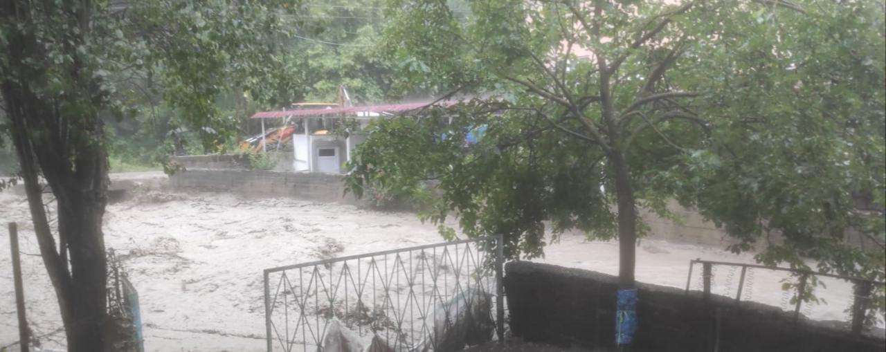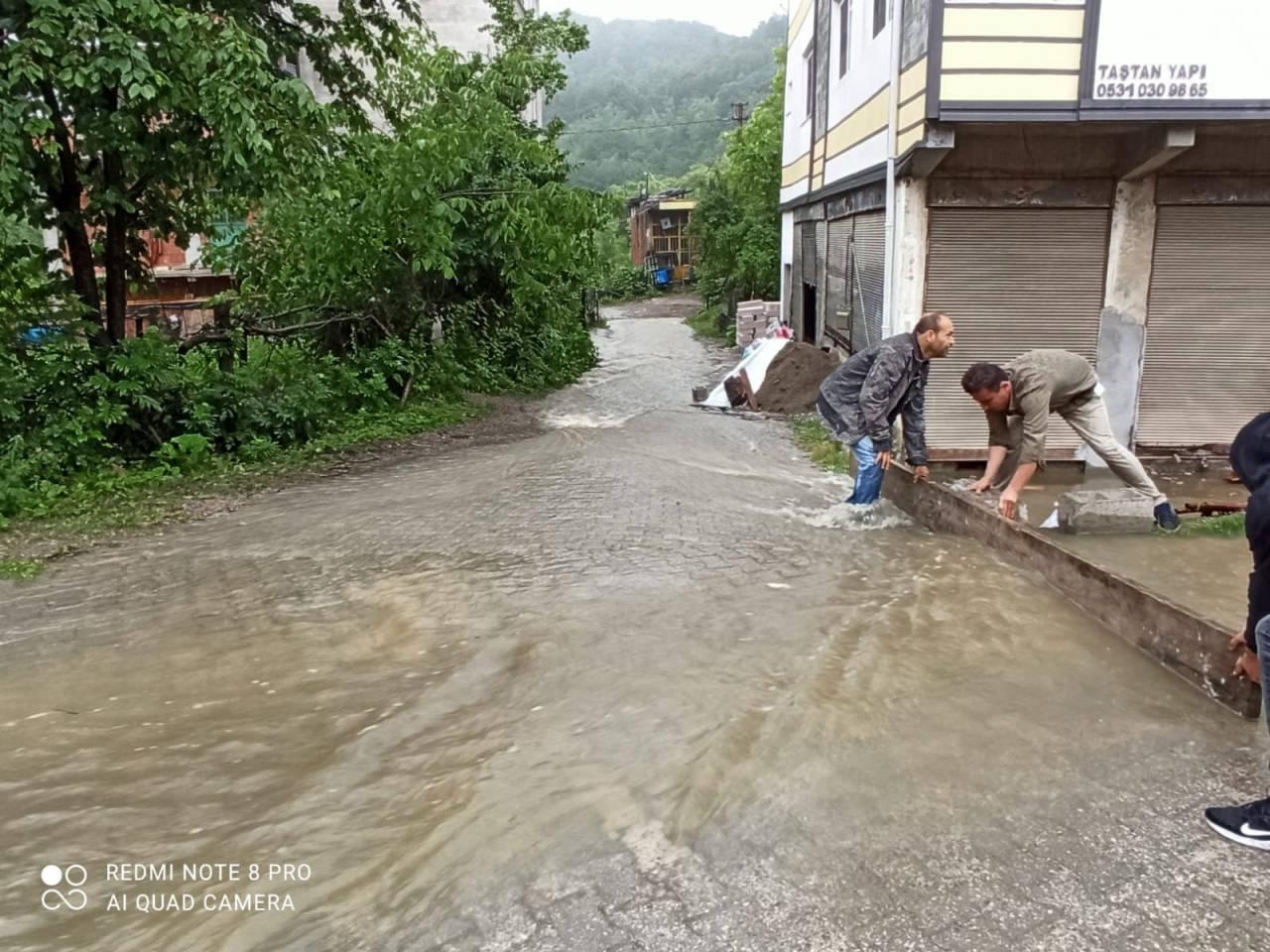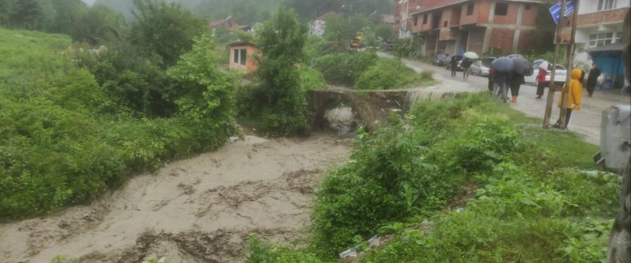 Karabük’ün Yenice ilçesinde etkisini devam ettiren sağanak hayatı olumsuz etkilerken, taşan dereler evler için tehlike oluşturuyor.