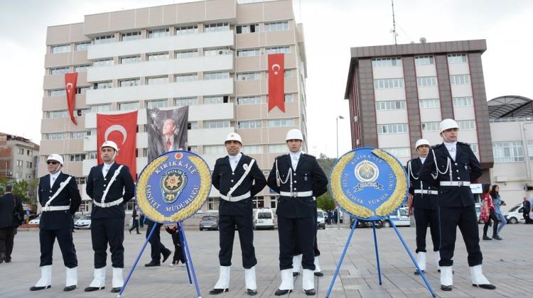 Cumhuriyet Meydanı'nda gerçekleşen törende İl Emniyet Müdürü Hasan Onar ve Kırıkkale Polis Meslek Yüksek Okulu Müdürü Hüseyin Aşkın'ın Atatürk Anıtı'na çelenk sundu. Ardından tören saygı duruşu ve İstiklal Marşı'nın okunmasıyla devam etti.