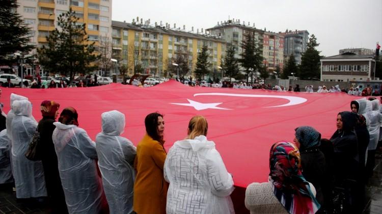 Milli Egemenlik Meydanı'nda kadınlar tarafından dev Türk Bayrağı dalgalandırıldı.