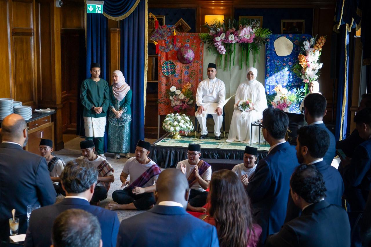 İstanbul’da bulunan diplomatik misyon temsilcileri, Malezya diasporası ve Malezya dostlarının bir araya geldiği bu etkinlikte de gelin ve damada tahtlarında tebrikler iletildi.