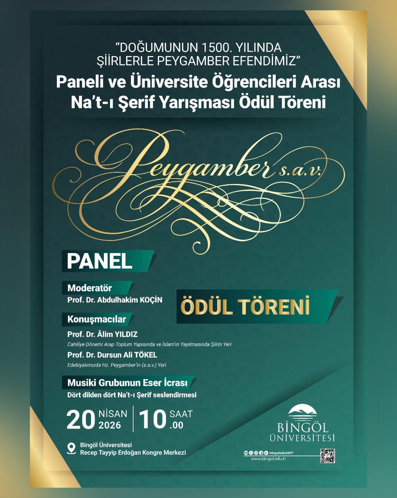 Bingöl Üniversitesi, Hz. Muhammed'in (s.a.v.) doğumunun Hicri 1500. yılı dolayısıyla Türkiye genelindeki üniversite öğrencilerine yönelik ödüllü Na't-ı Şerif yarışmasını düzenlemişti. Ödül töreni tarihi 20 Nisan 2026 olarak açıklandı.