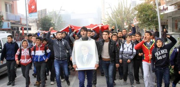 Saruhanlı Devlet Hastanesi önünde toplanan vatandaşlar, ellerinde Türk bayraklarıyla Hükümet Caddesi'nden İstasyon Meydanı, oradan da Yedi Eylül Caddesi'nden tekrar hastane önüne geldi.