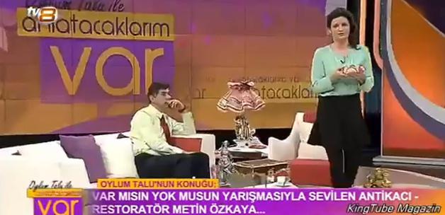 'Var mısın Yok musun' yarışmacısı ve antikacı restorator Metin Özkaya TV 8'de yayınlanan 'Oylum Talu ile Anlatacaklarım Var' programına katıldı. Elinde çok değerli bir antika parça olduğunu ve benzerinin olmadığını söyleyen Talu, antikayı elinden düşürüp kırınca olanlar oldu. "Çok özür dilerim hiç böyle bir şey yapmadım ben hayatımda" dedi. Talu'ya, Özkaya "parçayı alttan tutacaksın öyle kenarından tutulmaz ki" diye tepki gösterdi. Stüdyoda oluşan kısa bir sessizliğin ardından olayın, Talu ve Özkaya'nın seyircilere yaptığı bir şaka olduğu anlaşıldı.