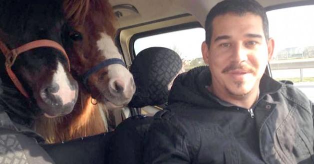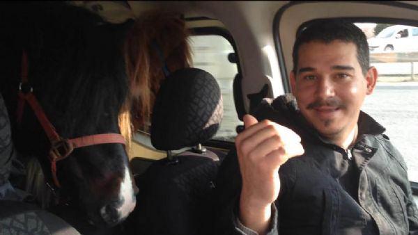 Balıkesir'in Edremit İlçesi'nde köpek eğitmenliği yapan 30 yaşındaki Birol Başyiğit, İstanbul'dan satın aldığı 'Pony' cinsi iki atı, hafif ticari otomobilin koltuğunda 475 kilometre yol katedip ilçeye getirdi.