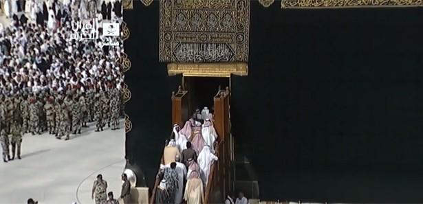 Prens Halid el-Faysal ve yanındaki kişiler, Kabe'nin içinde namaz kıldıktan sonra tavaf yaptı.
