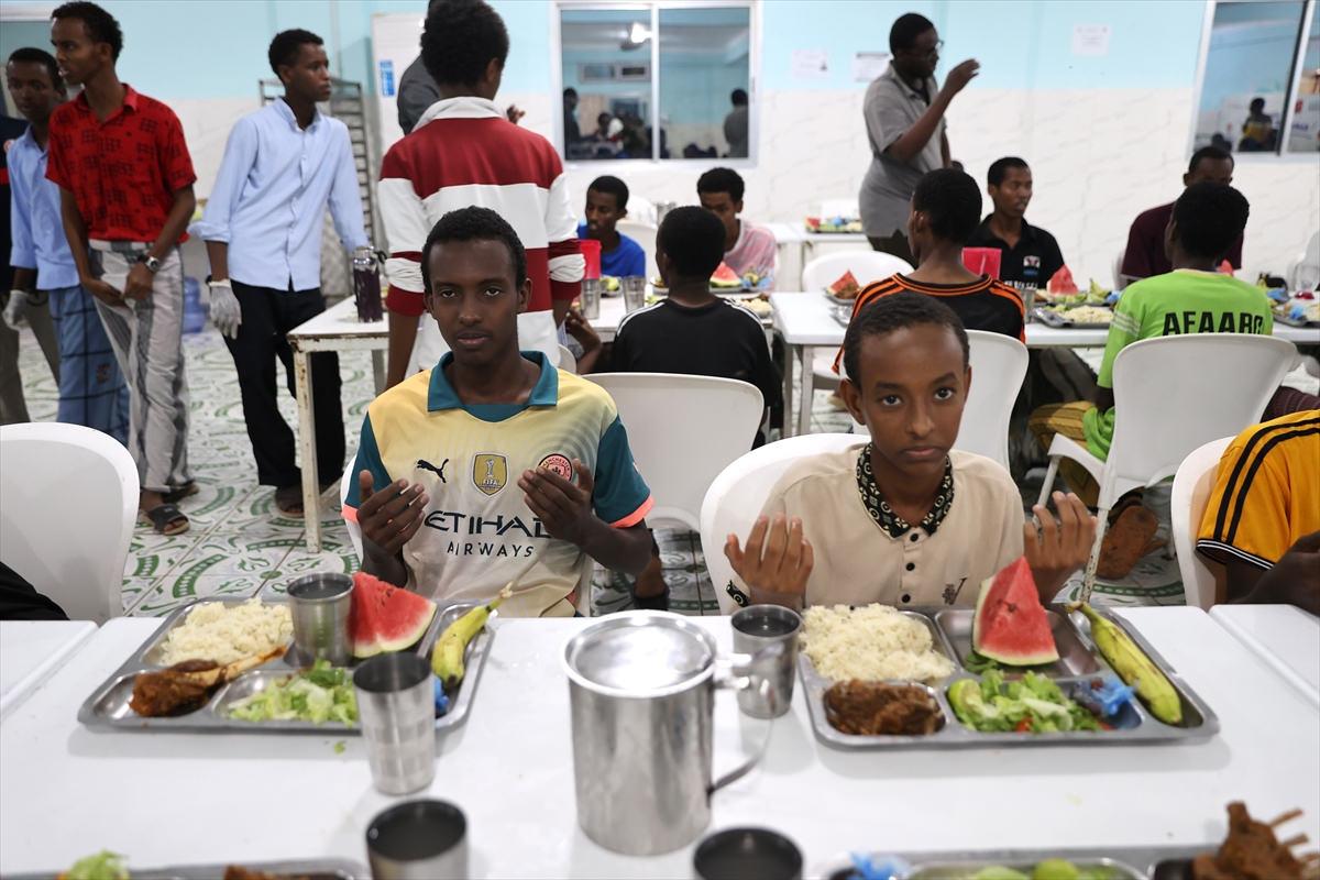 Mogadişu'nun Hawlwadag Sayidka bölgesindeki TDV Şeyh Sufi İmam Hatip Lisesinin yemekhanesinde iftar sofrasında da her gün onlarca öğrenciye ve çalışanlara iftar yemeği hizmeti sunuluyor.