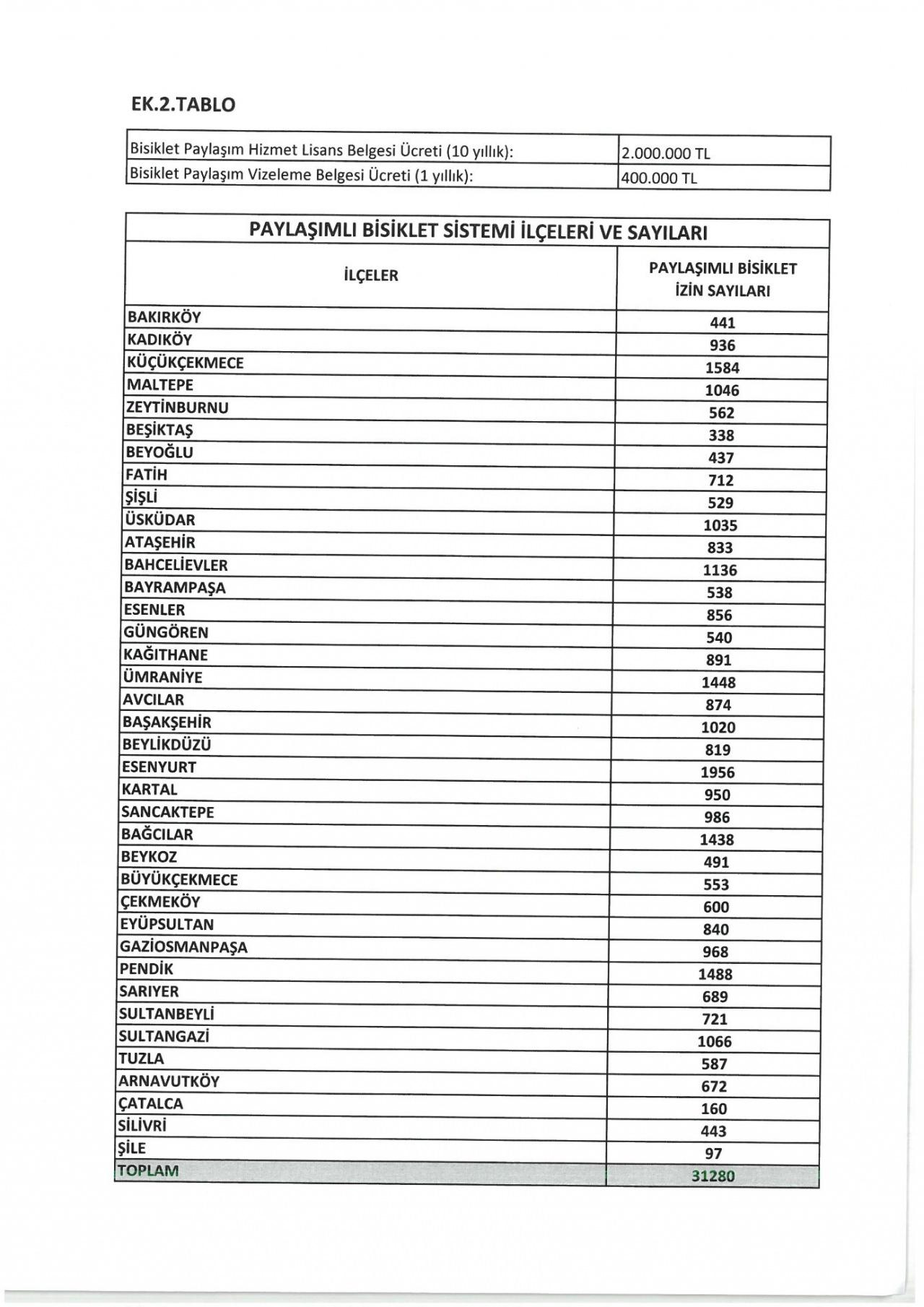 İşletmeye, her bir bisiklet için 1 İstanbulkart abonman bedeli uygulanır. |