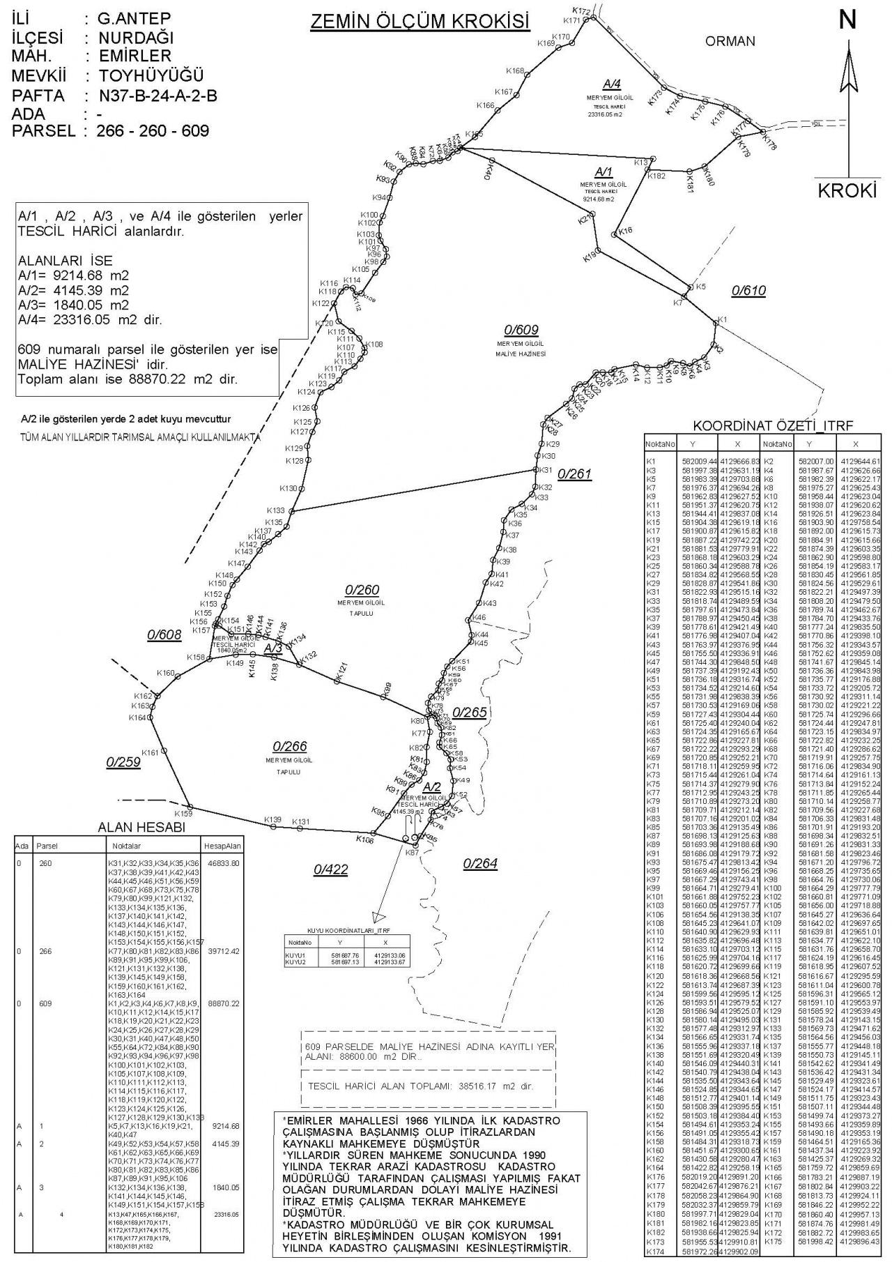 Davaya konu Gaziantep ili, Nurdağı ilçesi Emirler Mah. Toyhüyüğü Mevkii A1olarak görülen yerde, tescil dışı 9.214,68 m2'likyüz ölçümüne sahip taşınmaz, Gaziantep ili, Nurdağı ilçesi Emirler Mah. Toyhüyüğü Mevkii A2olarak görülen yerde tescil dışı4.145,39 m2'likyüz ölçümüne sahip taşınmaz, Gaziantep ili, Nurdağı ilçesi Emirler Mah. Toyhüyüğü Mevkii A3olarak görülen yerde, tescil dışı 1.840,05 m2'likyüz ölçümüne sahip taşınmaz, Gaziantep ili, Nurdağı ilçesi Emirler Mah. Toyhüyüğü Mevkii A4olarak görülen yerde, tescil dışı 23.316,05 m2'likyüz ölçümüne sahip taşınmazların davacı tarafından kullanıldığının bildirildiği ve davacı adına Tapuya Tescili talebiyle dava açıldığı görülmekle;