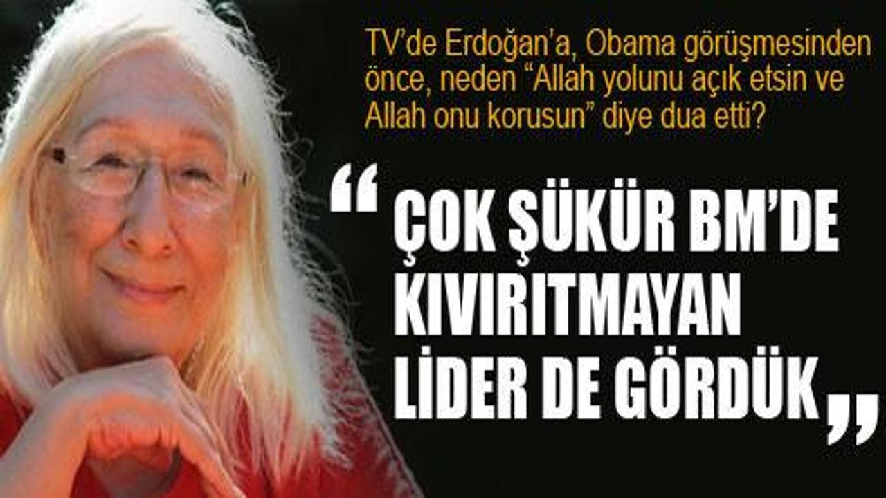 Sizi geçen gün televizyonda -Obama ile görüşme öncesinde- Başbakan Erdoğan için “Allah yolunu açık etsin ve Allah onu korusun” diye dua ederken gördüm. -Yüksek müsaadelerinizle- burada bir “anne” şefkati ve endişesi sezdim, onu onaylıyor ve üzerine titriyor gibi... Öyle mi?