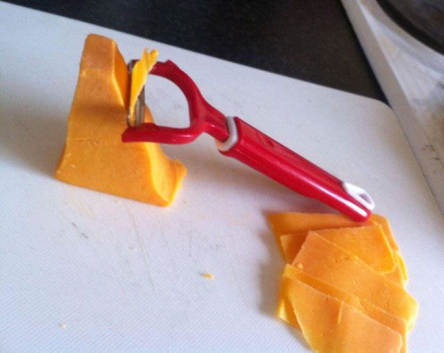 Havuç, patates, patlıcan gibi sebzeleri soymak için kullandığınız soyacak ile ince peynir dilimleri yapabilirsiniz.