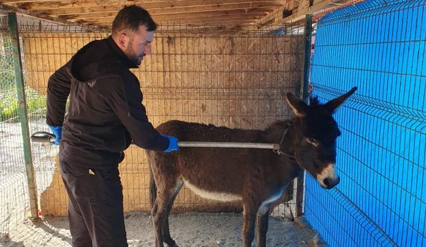 Veteriner hekim tarafından yapılan kontrollerde 3-4 yaşlarında ve sağlıklı olduğu belirlenen erkek eşek, koruma altına alındı.