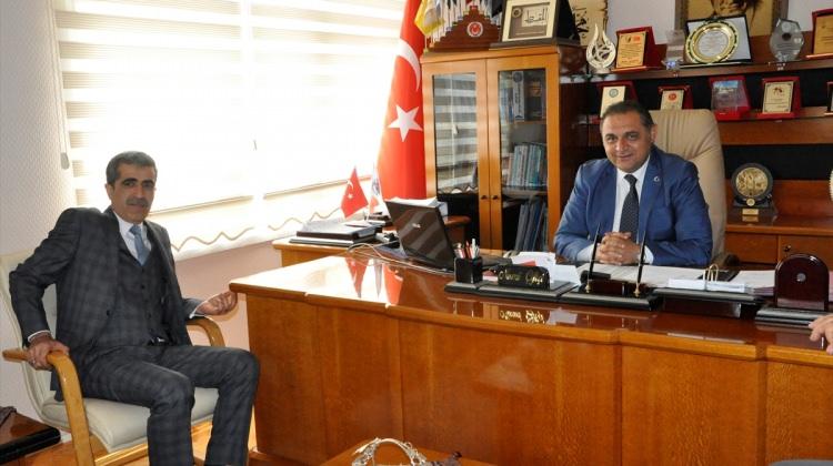Gürün Tapu Müdürlüğü'ne atanan Yunus Tokmak, Belediye Başkanı Nami Çiftçi'yi makamında ziyaret etti.