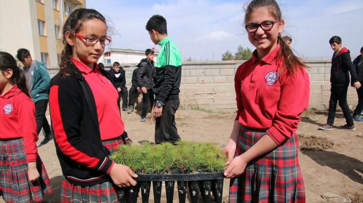 Sivas'ın Şarkışla ilçesinde "Kardeş Okul" Projesi kapsamında 150 çam fidanı dikildi.