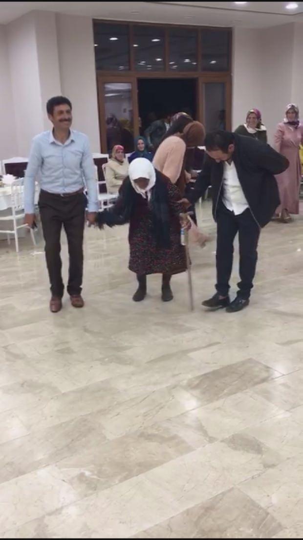 Sivas'ın Gölova ilçesinde 105 yaşına rağmen torununun düğününde bastonu ile halay çeken Sabayi nine, sağlığını sürekli tükettiği manda yoğurduna borçlu olduğunu söyledi.