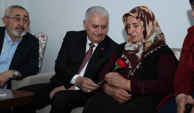 Binali Yıldırım, şehidin annesi Ayşe Bayar ve evde bulunan yakınlarına karanfil vererek Anneler Günü'nü kutladı.