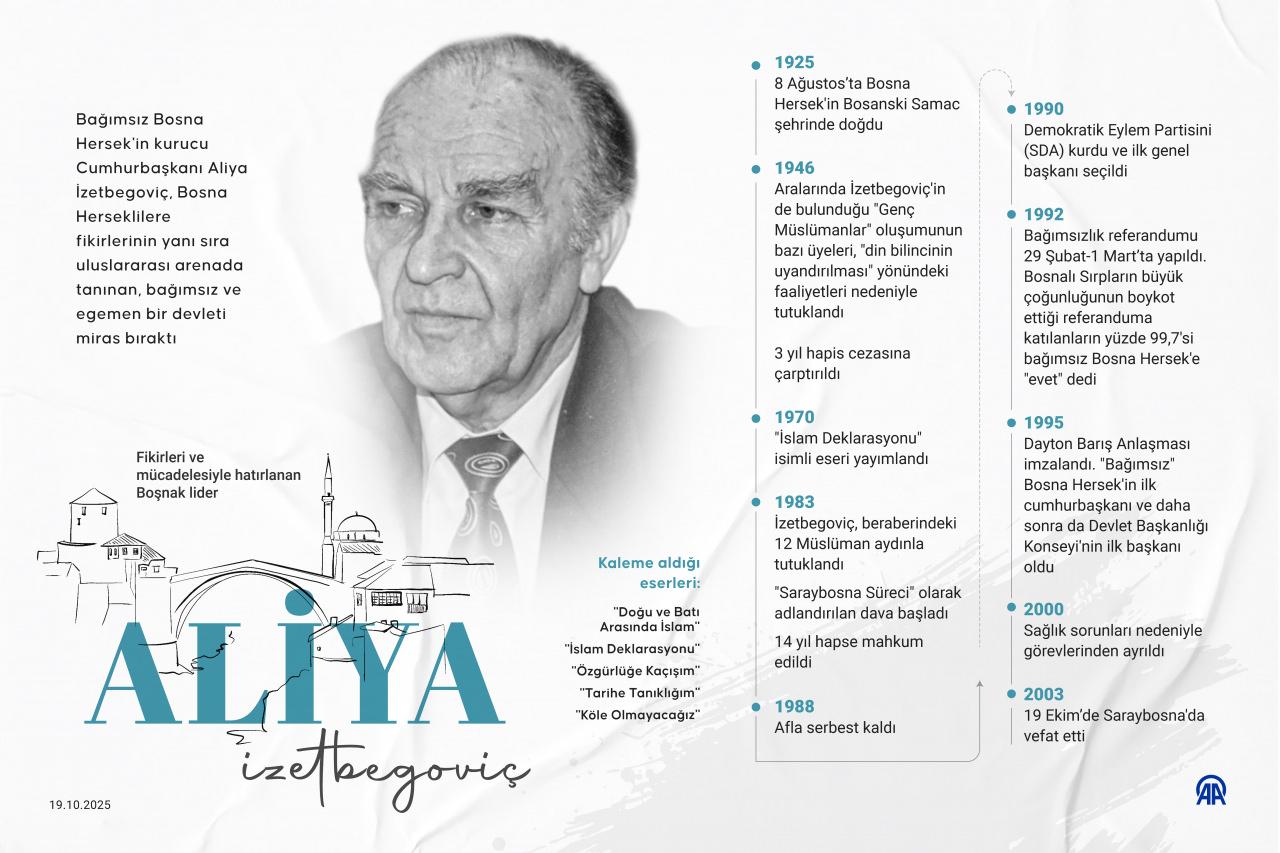 Bosna Hersek'in bağımsızlığını kazandıktan sonra ülkenin ilk Cumhurbaşkanı olarak görev yapan Aliya İzetbegoviç, vefatının 22. yılında da fikirleri, ahlaki duruşu ve mücadelesiyle anılmaya devam ediyor.