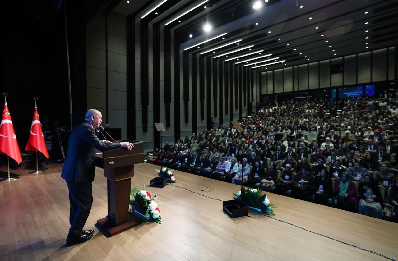 Erdoğan, bu sınamalar karşısında gerek demografik yapıyı iyileştirmeye, gerekse aile kurumunu güçlendirmeye yönelik çalışmalara hız verdiklerini dile getirerek, 2025'i Aile Yılı ilan ettiklerini hatırlattı.