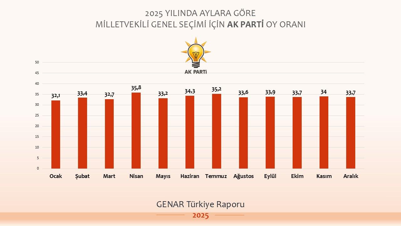 GENAR anketinde 2025 yılı boyunca AK Parti’nin oy oranlarındaki değişim şöyle ölçüldü: