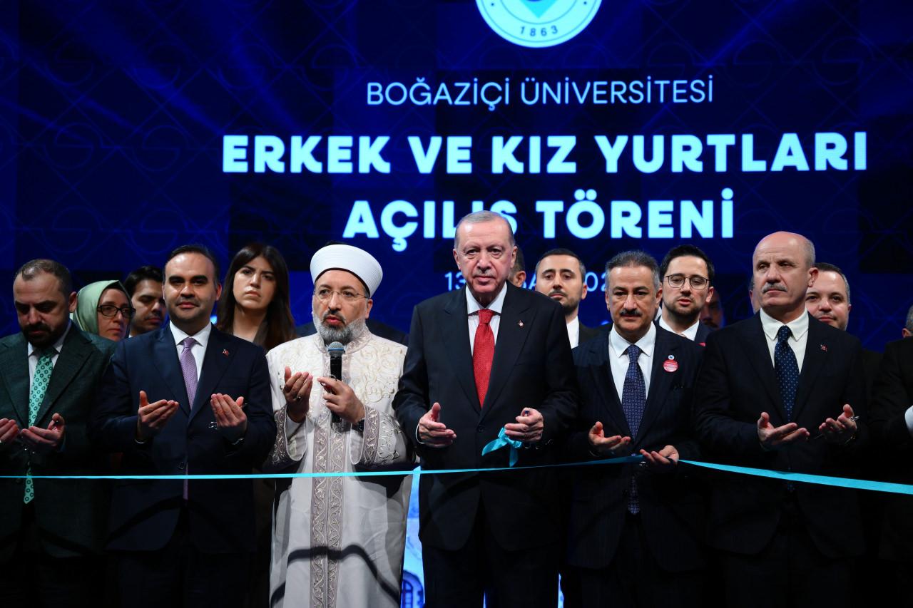 Cumhurbaşkanı Recep Tayyip Erdoğan, Boğaziçi Üniversitesi Erkek ve Kız Yurtları Açılış Töreni'nde yaptığı konuşmada, "Yükseköğrenim süreçleri boyunca bu yurtlarda kalacak gençlerimize Rabbimden üstün muvaffakiyetler diliyorum. Farklı şehirlerden gelen öğrencilerin gönül huzuruyla konaklayacağı, ailelerinin gözünün inşallah arkada kalmayacağı bu yurtların gençlerimize, üniversitemize ve şehrimize hayırlı, uğurlu olmasını temenni ediyorum" dedi.