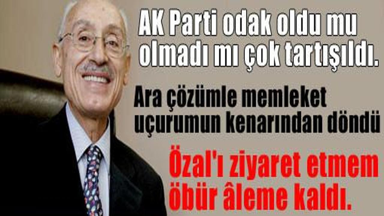 Ecevit (Bülent) döneminde anayasa değişti ve parti kapatma zorlaştırıldı. Ceza sadece kapatma değil, ondan bir evvel devlet yardımından mahrum bırakılma veya aldığı yardımın tamamını ya da bir kısmını iade cezası getirildi. AK Parti odak oldu mu olmadı mı çok tartışıldı. ‘Kesin odak’ diyenler oldu, kapatılmasını istedi, bir kısmı ‘hiç odak olmadı’ dedi. Bir kısmı da ‘kapatılmaya gitmeyecek, para cezası kadar bir laikliği zedeleme olmuştur’ dedi ve bir ara ceza verilmesini istedi. Sonuçta oylama yapıldı ve parti kapatılmadan bir ikazda bulunuldu. Bu karar Türkiye’nin hayrına oldu.