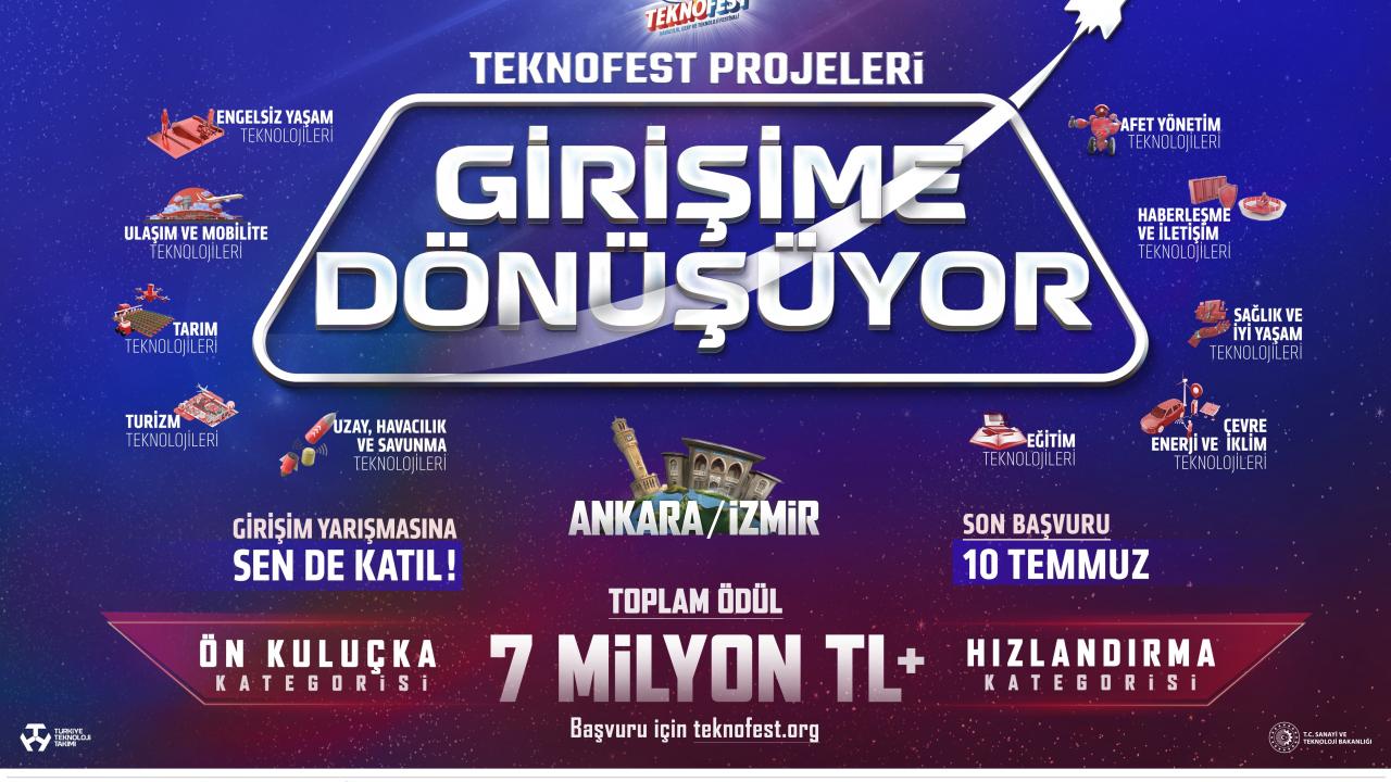 TEKNOFEST yarışmacılarının girişim ekosistemine dahil olmaları, teknoloji yarışmalarında geliştirilen projelerin ticarileştirilerek topluma kazandırılması ve de girişime dönüşen projeler ile Milli Teknoloji Hamlesi’ne katkı sağlanmasının amaçlandığı yarışmada katılımcılara toplamda 7 milyon TL’nin üzerinde ödül verilecek.