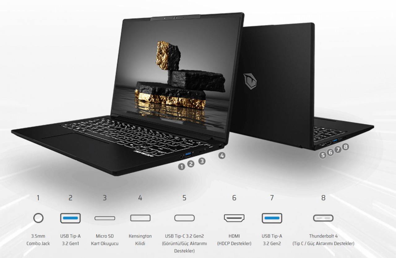 Depolama tarafında ise 1 TB M.2 NVMe SSD 5000 MB/s okuma 3600 MB/s yazma hızları ile hem işletim sistemi hem profesyonel yazılımlar için akıcı bir kullanım hedefleniyor.