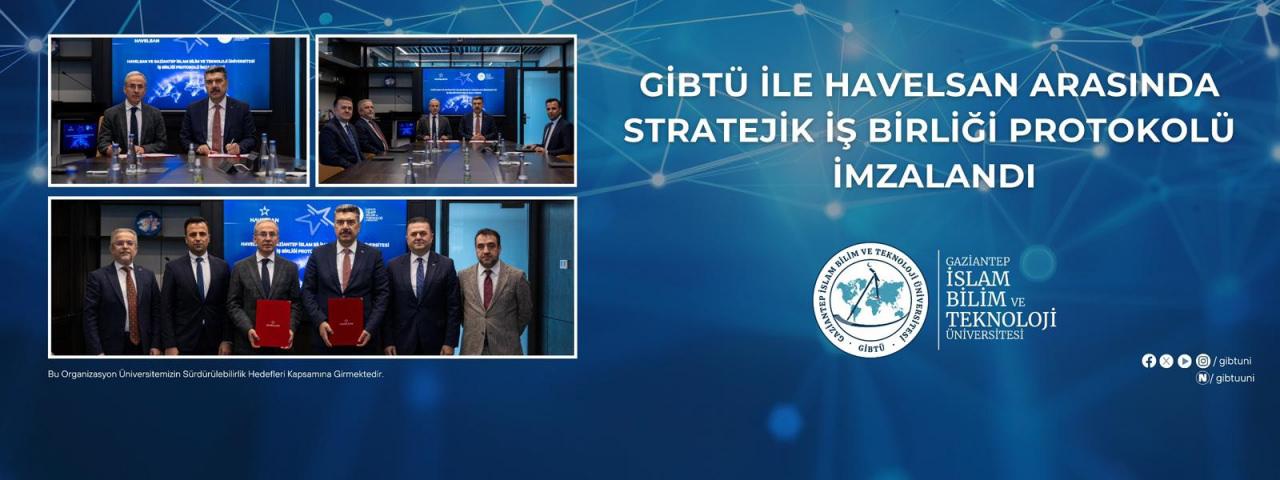 Gaziantep İslam Bilim ve Teknoloji Üniversitesi (GİBTÜ) ile HAVELSAN A.Ş. arasında savunma, güvenlik ve bilişim teknolojileri alanlarında nitelikli insan kaynağı yetiştirilmesi, ortak araştırma-geliştirme faaliyetlerinin yürütülmesi ve sektörel tecrübenin akademik ortama aktarılması amacıyla stratejik iş birliği protokolü imzalandı.