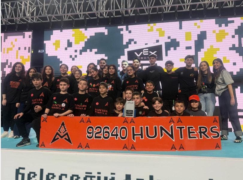 Hunters Robotics Junior takımı, VEX Robotics Challenge Türkiye Şampiyonası’nda hem Türkiye üçüncüsü oldu hem de prestijli Design Ödülü’nü kazanarak ABD’de düzenlenecek Dünya Şampiyonası’na katılma hakkı elde etti.