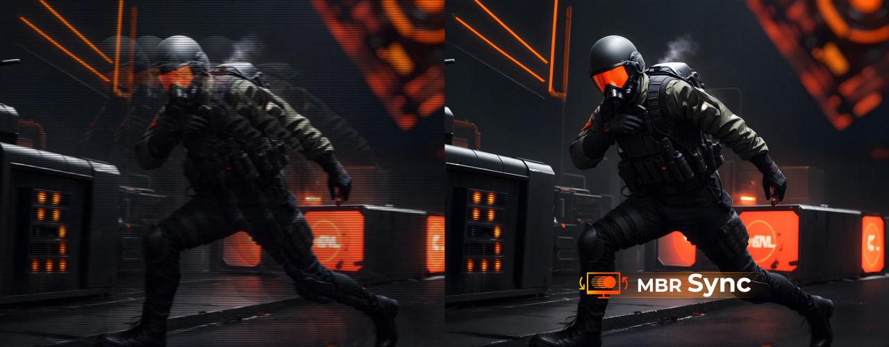 Agon by AOC, oyun sırasında kare hızları dalgalanan oyuncular için pratik bir çözüm olan MBR Sync ile, arka ışık patlamasını değişken yenileme hızı çıkışıyla senkronize ediyor, böylece yırtılma ve takılma olmadan ve algılanan hareket bulanıklığını azaltarak değişken yenileme hızının avantajlarını sunuyor. AOC GAMING G4 ve AGON PRO serilerinde MBR performansı yenileme hızıyla ölçekleniyor: 144 Hz ile 220 Hz arasında çalışan monitörler 0.5 ms MPRT, 240 Hz ve üzeri monitörler ise daha da keskin 0.3 ms MPRT sağlıyor.