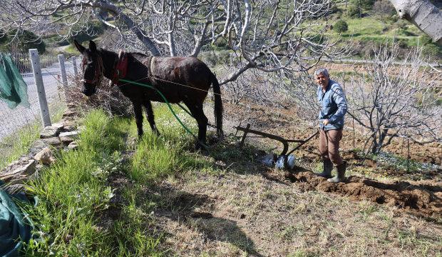 "İncirlerin, asmaların diplerini işliyoruz. Onları sürüyoruz. Bizim buralarda traktör zaten işleyemiyor. Çapa makinesi işliyor ama o da bunun yaptığı işi yapamıyor. Mecburen yine hayvanla çalışıyoruz. Bahar mevsimi geldiği zaman mart ayında başlarız bu toprakları işlemeye, hazirana kadar devam eder. Köylerimizde maalesef genç kalmadı. Köyün en gençleri biziz. Köyün en gençleri 50 yaş üzeri. Haliyle bizim başımıza kalıyor işler. Gençleri buraya çekmemiz için köylere destek verilmesi lazım. Böyle giderse bizden sonra bu toprakları işleyecek insan kalmayacak. Çoluk çocuk yetişmeyecek. Benim 3 evladım var, üçü de dışarıda."