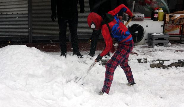 Görüntüler Van'dan: Örümcek adam kar küredi