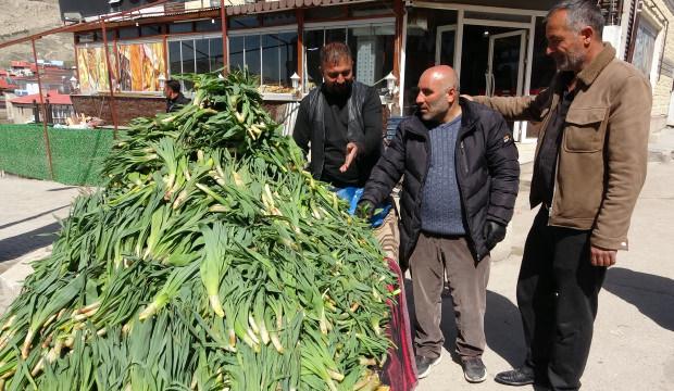 Kentte nisan ile mayıs aylarında karların erimesiyle birlikte dağların yüksek kesimlerinde yetişen çiriş otu, pazarlardaki yerini aldı.