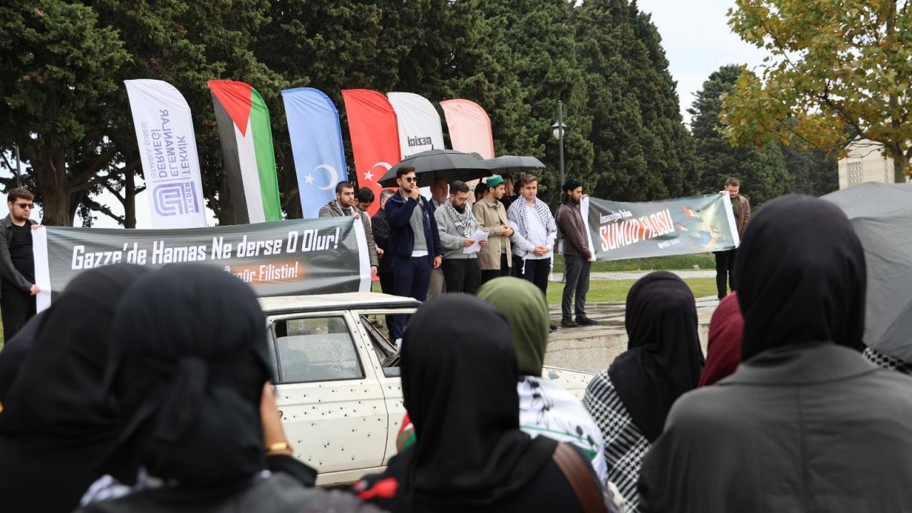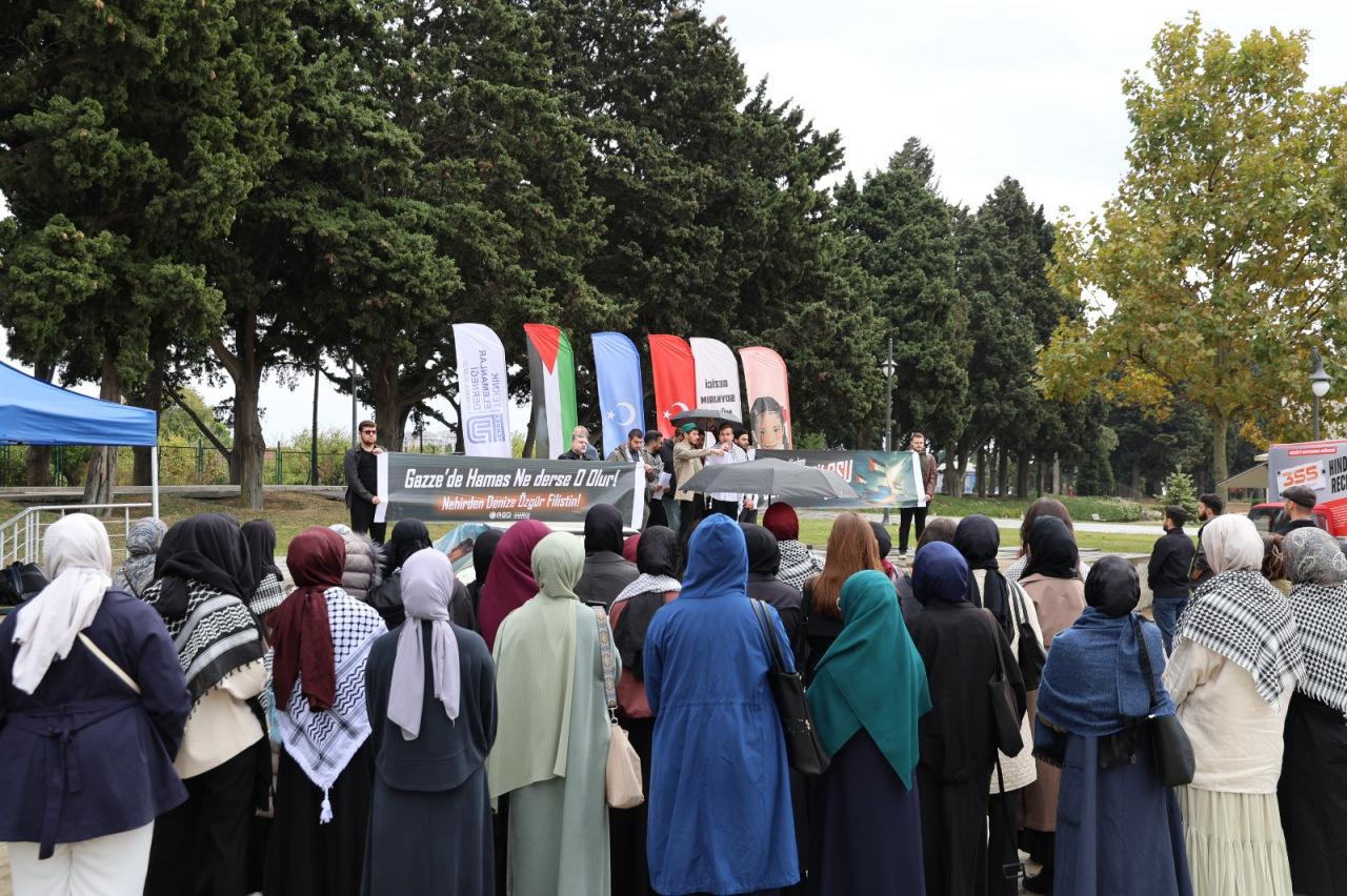 İstanbul Sabahattin Zaim Üniversitesi öğrencileri de Üniversitenin Halkalı’daki kampüsünde bir araya gelerek İsrail’in saldırılarını kınadı.