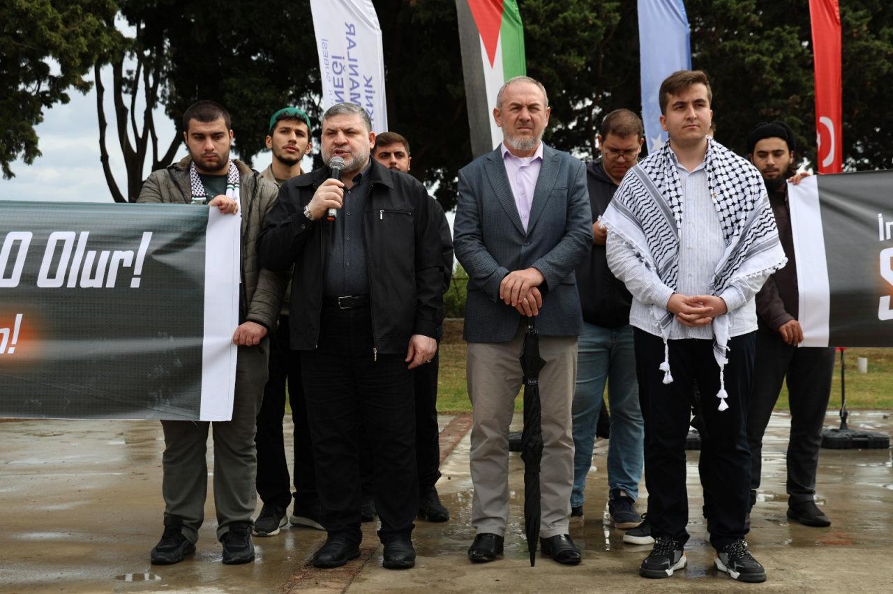 Milli Gençlik Kulübünün öncülüğünde toplanan öğrenciler, basın açıklaması yaparak İsrail’in hukuk dışı saldırılarını protesto etti.