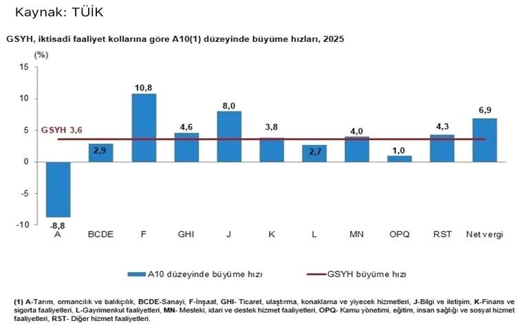 Türkiye ekonomisi 2025’te toplamda %3,6 büyüdü.