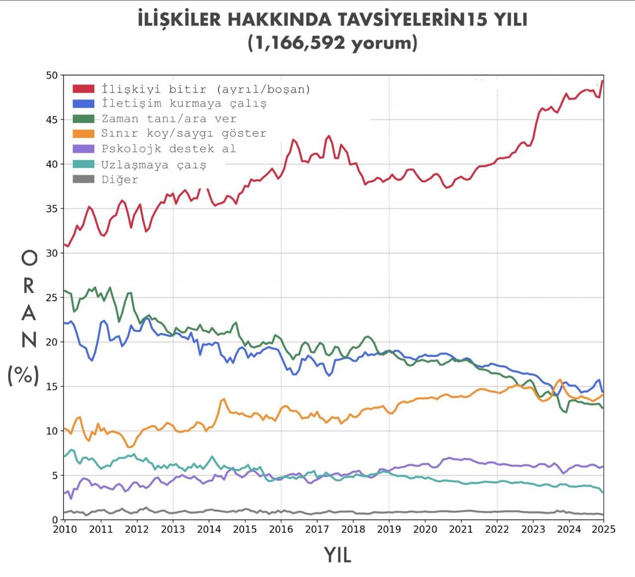 İlişki danışmanına git diyenlerin ve sınır koy diye tavsiye verenlerin oranlarında da artış var ama o kadar yüksek değil.