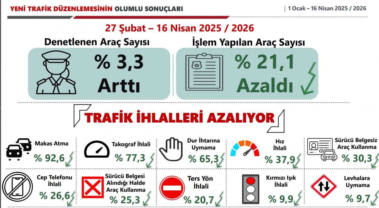 “Denetlenen Araç Sayısı”nda yüzde 3.3’lük bir artış olmasına rağmen…