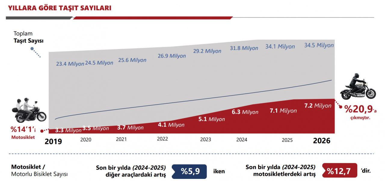 O da yıllara göre, trafiğe çıkan motosiklet sayısındaki olağan üstü artış…