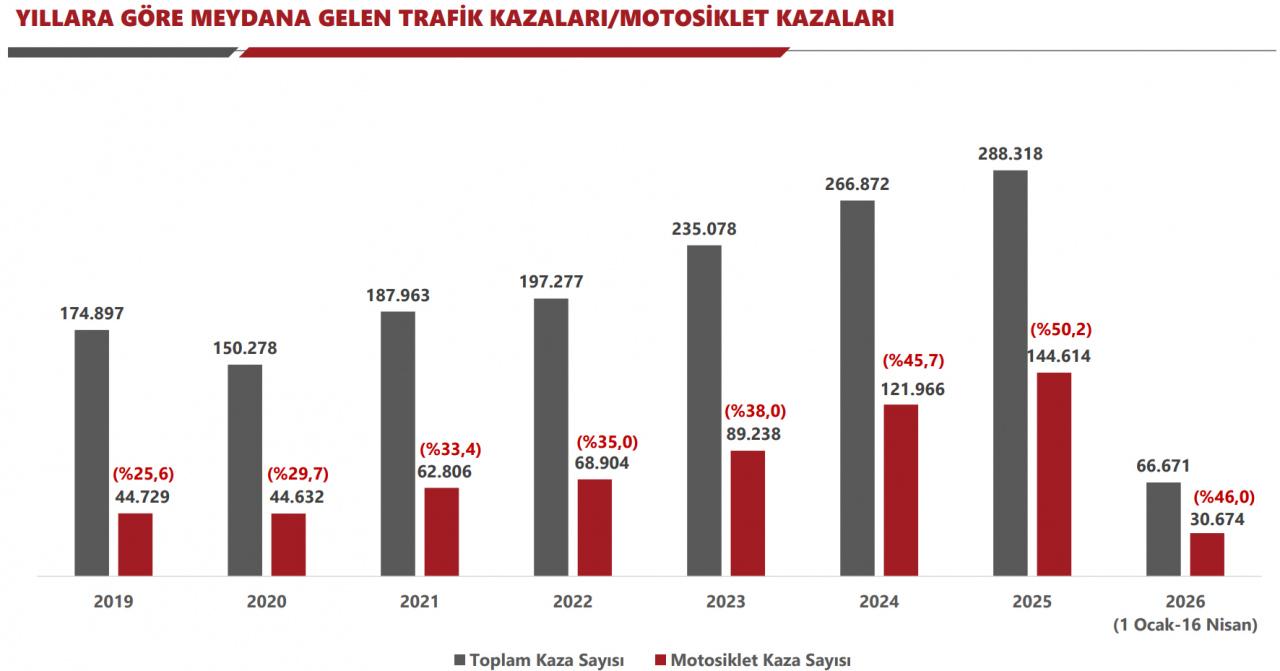 2019’daki trafik kazalarında motosikletlerin oranı yüzde 25.6 olmuş.